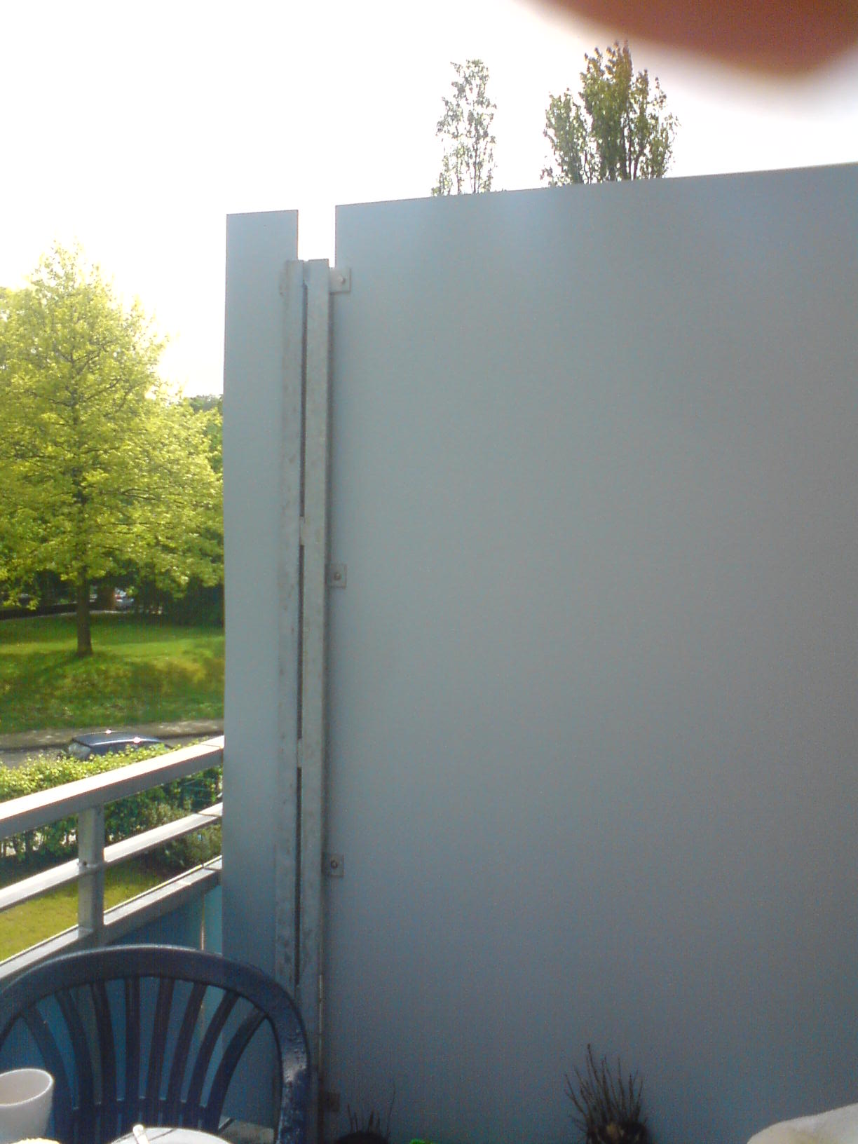 Also, der Balkon ist so, wie der obere auf dem Link. Nichts darüber, sonst würde ich ja kein Problem haben. Ich hatte extra die eine Ecke fotografiert, wei dort keine Trennwand sondern nur die ein Meter hohe Brüstung ist.