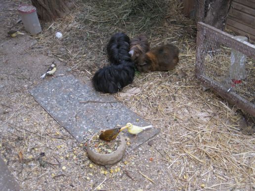 In den Volieren bei den Vögeln bewohnen im "Untergeschoß" meine Meerschweinchen..