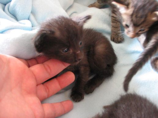 ein kleiner ist blue und der andere chocolate- tabby. Und das einzige Mädchen, eine supersüße ebony Maus, die voraussichtlich bei uns bleiben wird.