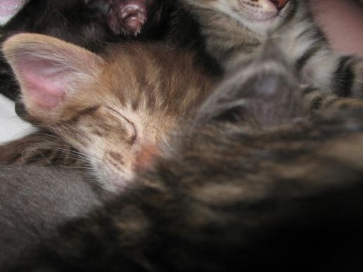 Einmal war ein kleiner Tabby nicht sofort auffindbar. Katharina meinte, dass bei meine Tasche mal kontrolliert werden müsse. Meine Tasche? Heiligenschein Ich hätte doch nicht nur eins genommen, tsss! Er lag aber nur versteckt in der Kuschelhöhle... Komisch, verschwinden einfach so kleine Kätzchen.