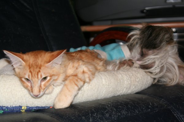 Ich mag andere Katzen aber ganz besonders kleine Hunde wie auf einem der Fotos zu sehen ist.