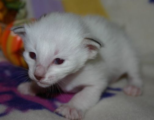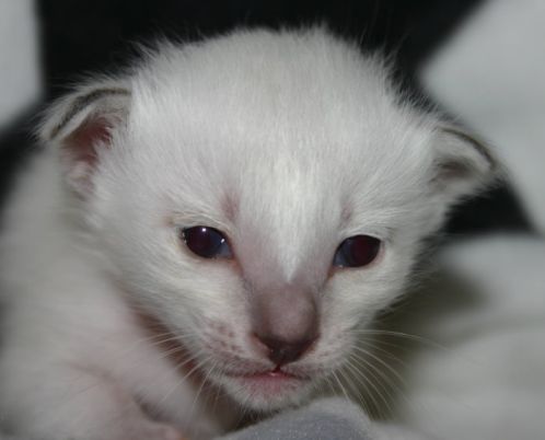 Das Mädchen bleibt auf jeden Fall bei uns, auch wenn ich vieleicht nicht begeistert bin über die Farbe die die Kleine hat oder besser gesagt bekommt. Seal-ppoint ist nicht so unbedingt meine Farbe. Da die Zwerge erst 2 Wochen alt sind, warte ich einfach noch ab.