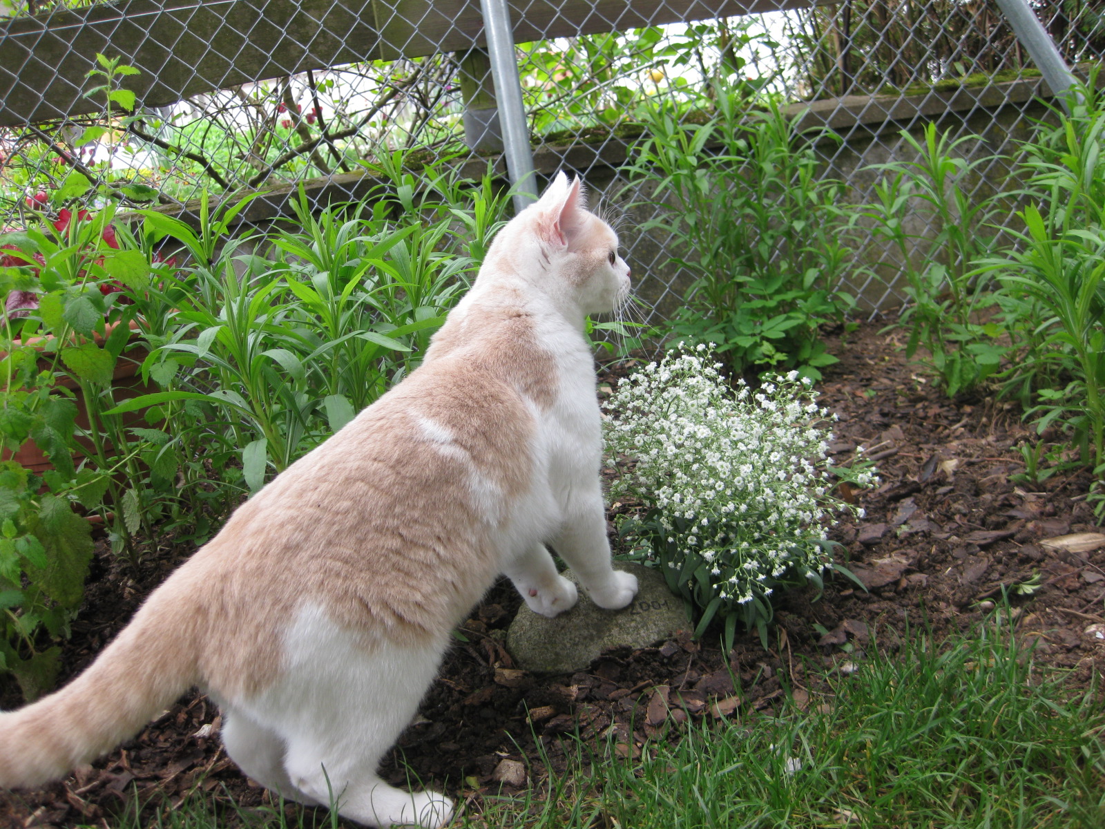 In den nächsten Tagen möchte ich noch ca. bis eine Höhe von 1/2 m Strohmatten anbringen. Damit möchte ich den Kontakt zu freilebenden Katzen vermeiden.