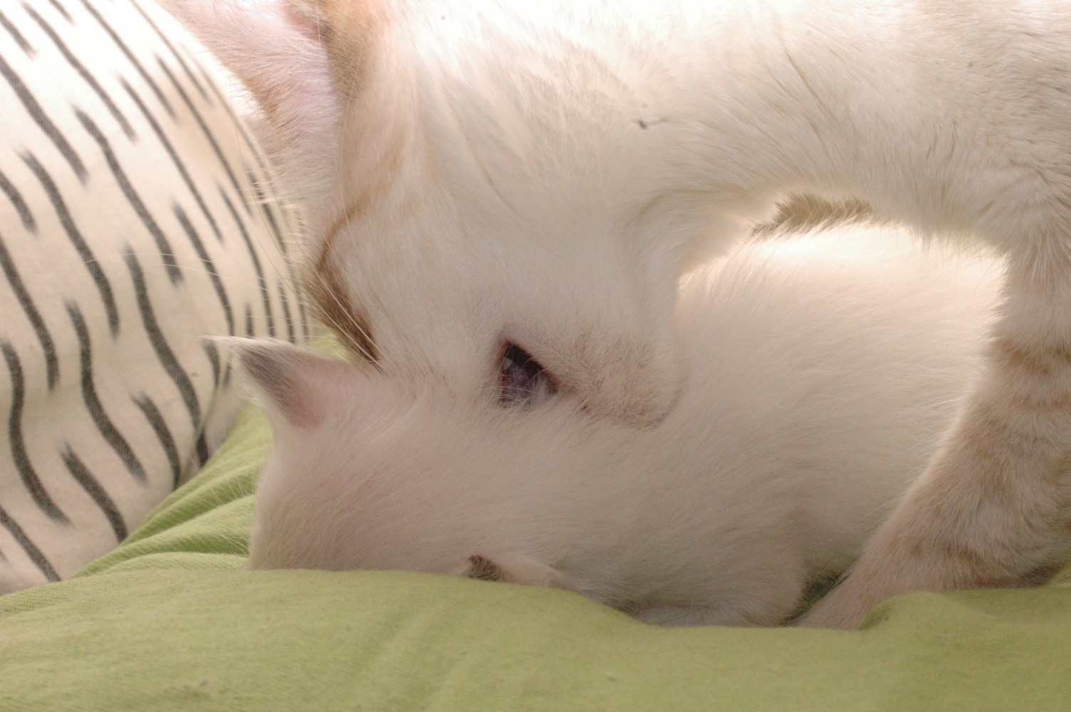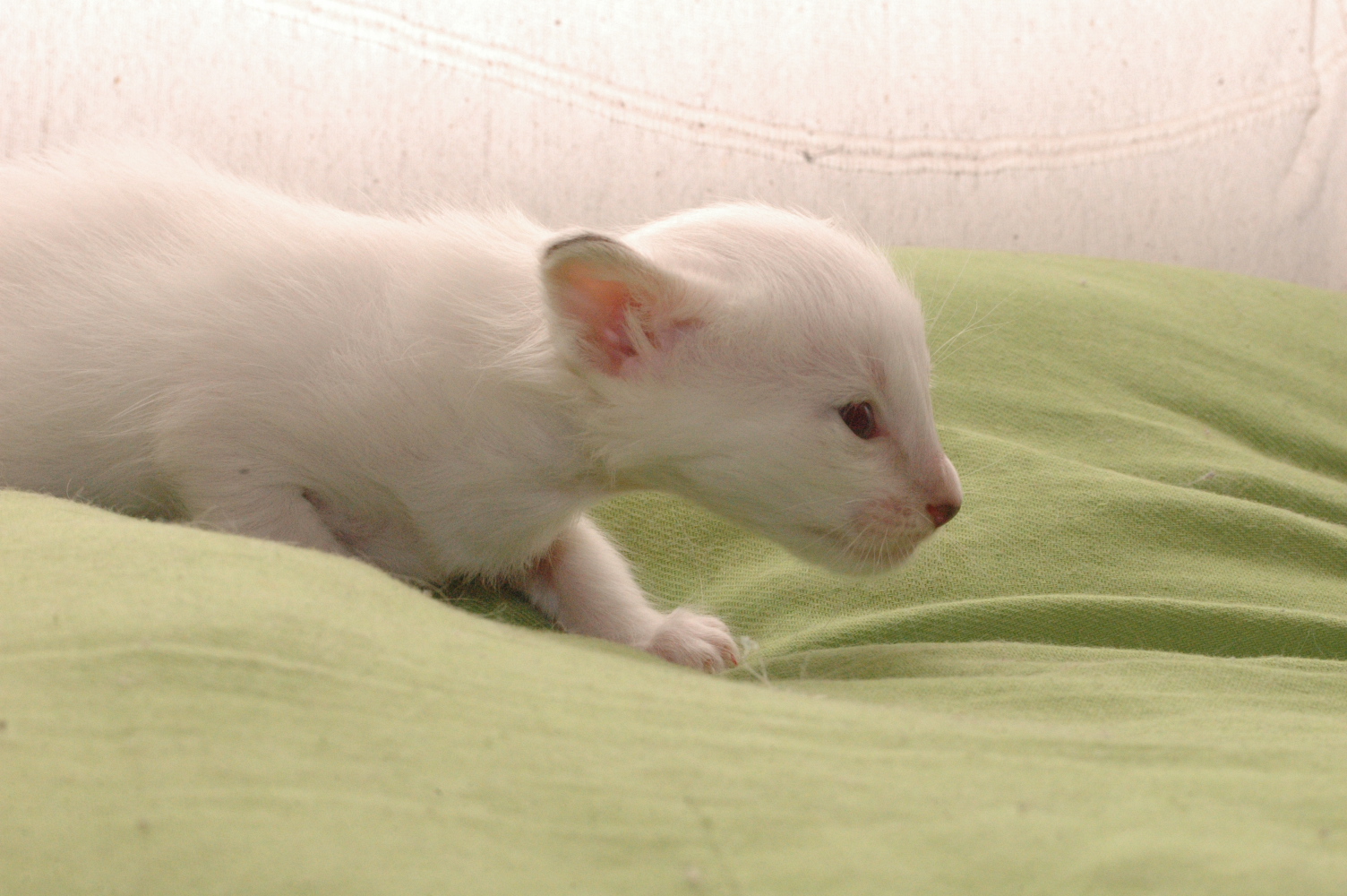 Die Augen hatten sie vor 4 Tagen geöffnet, bzw teils etwas früher. Ich finde aber Bilder, wenn beide Äuglein richtig offen sind schöner, deswegen hat es etwas gedauert Zwinker .