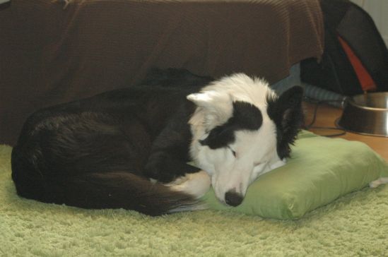 Tja, wenn Sam nicht auf´s Sofa darf, dann holt er eben einen Teil des Sofas zu sich *gg*