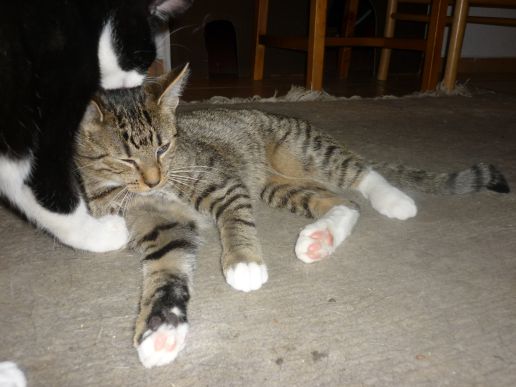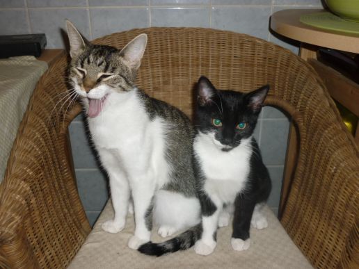 also ich bin ja noch ganz neu hier, hab da aber mal eine Frage zum Fell/Farbe meiner Bande. Ich finde das unheimlich interessant, was es da für Unterschiede gibt, aber ebenso finde ich es wirklich kompliziert. Meist hört man davon ja auch eher in Verbindung mit Rassekatzen. Aber wie ist es bei Lastramis? Wenn ich meine beschreiben müßte, würde ich sagen, ich habe einen schwarz/weißen Kuhkater^^ und zwei "Terrortiger", wobei die Mama wesentlich mehr weiße Anteile hat als ihr Tigersohn. In meiner Vorstellung habe ich ja schon erzählt, das wir sie als angeblich kastriert bekommen haben, dem ja leider nicht so war und sie dann nach einem Rendevouz mit einem der Kater, die bei uns unterwegs sind, vier kleine Zwerge bekam (2 schwarz/weiße und 2 tiger). Sowohl bei Josie, als auch bei ihren 2 Tigerkindern ist ein gewisser rot/braun Teil im Fell. Ich weiß natürlich nicht, wie der Vater "angezogen" wargute Laune .