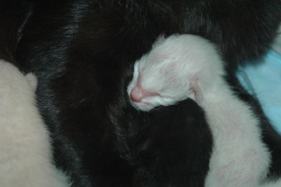 Ein Bild vom ersten und eines vom zweiten Kitten habe ich gemacht. Aber mehr noch nicht, denn ich bin froh dass sie nun erstmal alle fein trinken bei Mama.