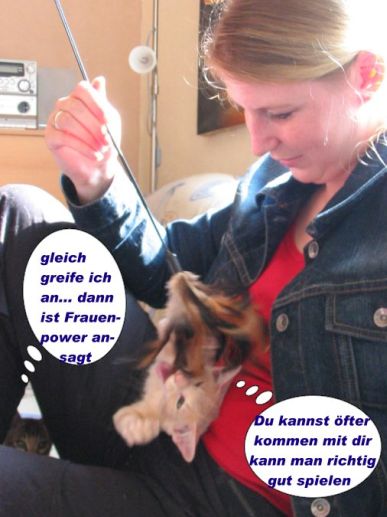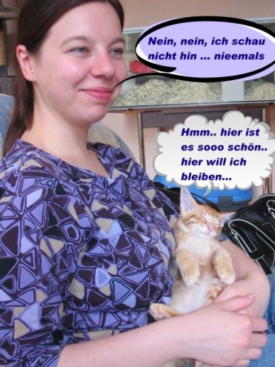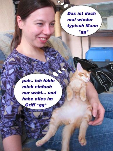 War echt sehr schön gestern gute Laune . Aber sag mal, so klein die Fellnasen auch noch sind... so gemein können sie einen schon anschauen. Vor allem Aurelio wie er sich an dich rangekuschelt hat und dich mit diesem " Ach was bin ich nicht süß und so liebebedürftig"-Blick angeschaut hat. Oder Atinka, wie sie sich an dich geschmiegt hat als wolle sie da nie wieder weg. Aber wäre ich eine Katze, hätte ich das auch gemacht Nicken , bei den Leckerchens, die man dann von dir bekommt gute Laune .