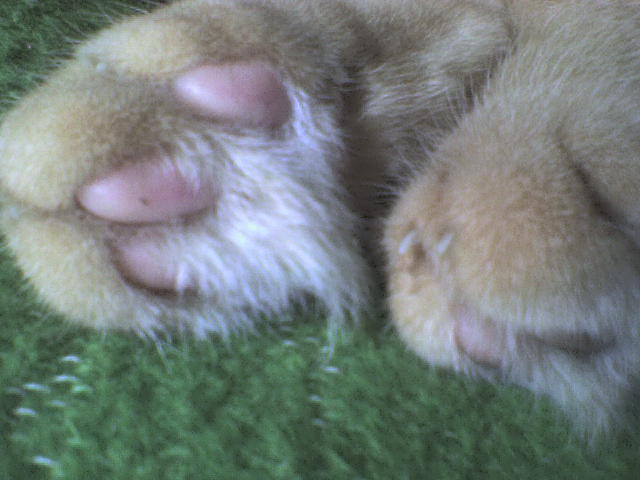 Besonders auffällig finden wir seine niedlichen 'Teppichfüße'. Zwischen den Ballen hat er ganz lange weiche Haare, besonders an den Hinterpfoten, die dazwischen herumpuscheln. Das kenne ich gar nicht von EKH.