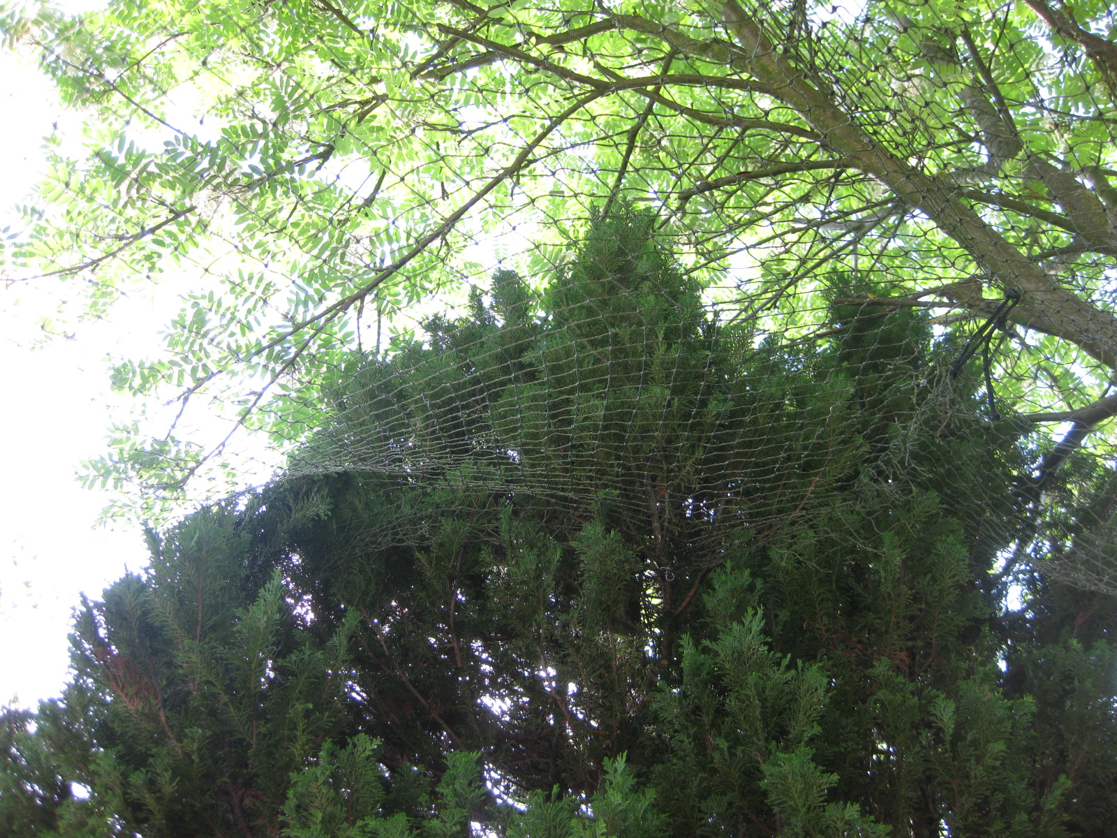 Die ersten beiden sind von unten aufgenommen. Ich weiß nicht, ob man das gut erkennen kann. Ich habe das komplette Gehege mit bißfestem Katzenschutznetz verschlossen.